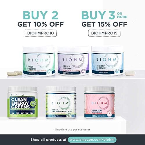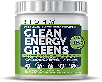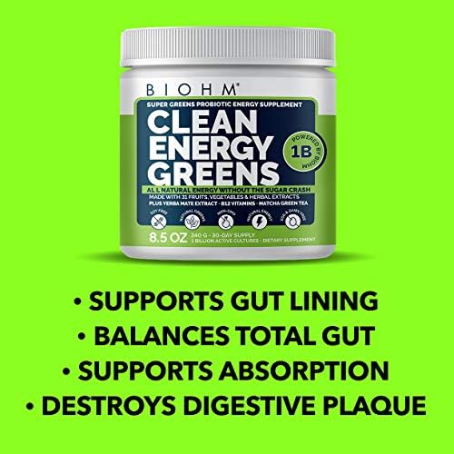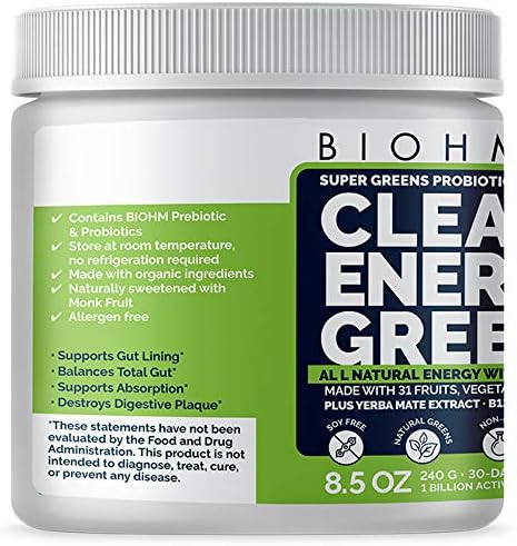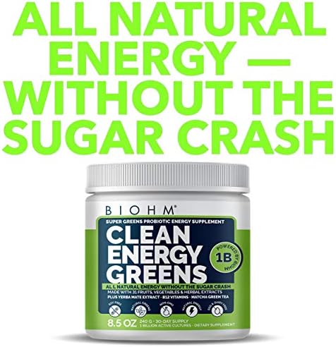 BIOHM Clean Energy Greens – 30 Servings – with Probiotics, Super Greens Superfood, 31 Natural Fruit, Vegetable and Herbal Extracts – All Natural Energy Powder Without Sugar Crash – Non-GMO