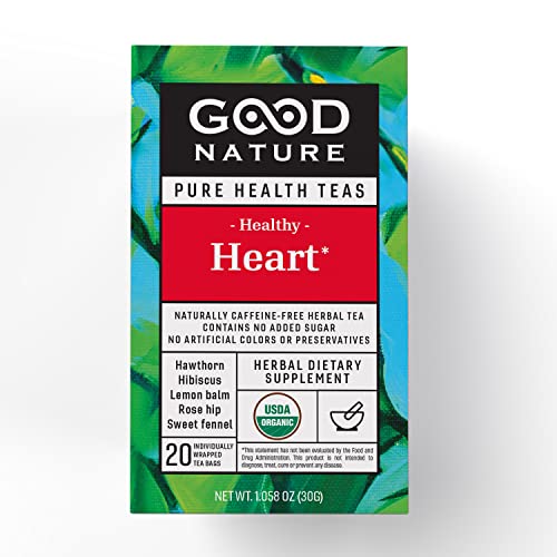 Herbal tea that may help support cardiovascular health. Contains no sugar, artificial colors, artificial flavors or preservatives.100% Certified Organic100% Caffeine Free100% Gluten Free100% Calorie Free100% Sugar Free100% Good for YouAll Good Nature Teas are made using only the highest quality, Pharmacopoeial Grade Herbs, according to the official European Pharmacopoeia. All teas are developed by Master Blendists according to the ancient traditions of North Macedonia.IngredientsOrganic Hawthorn leaf and flowerOrganic Hibiscus flowerOrganic Lemon Balm leafOrganic Rose HipOrganic Sweet Fennel fruitGo to goodnaturetea.com for more information. This statement has not been evaluated by the Food and Drug Administration. This product is not intended to diagnose, treat, cure or prevent any disease.