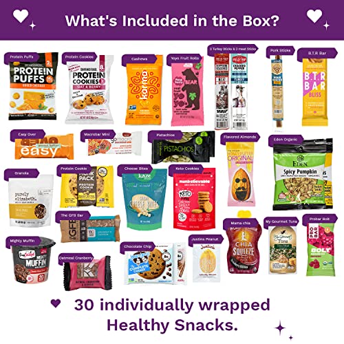 Variety Snack Pack Sampler Box: Amazing variety of delicious grab & go meal replacements energy snacks and low sugar treats. this is ideal workout care package- no fluffy chips in this box.