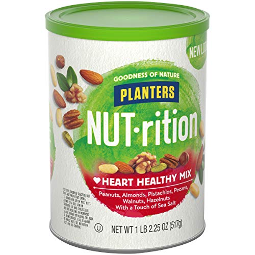 Planters NUT-rition Heart Healthy Nut Mix delivers a tasty combination of peanuts, almonds, pistachios, pecans, walnuts and hazelnuts, all sprinkled with a touch of sea salt to enhance the flavor. These nuts provide a good source of six essential nutrients. This mix may help you reduce your risk of heart disease so your heart will love them as much as your mouth. Meeting the nutritional standards that you demand, these mixed snack nuts are a good source of fiber and have 15 grams of fat per serving. They’re also low in sodium, cholesterol free and trans-fat free, so you can feel good about eating these Non-GMO mixed nuts. They’re great for those keeping Kosher and come in a resealable 18.25 ounce canister to ensure freshness and prevent spills.