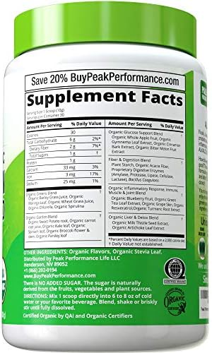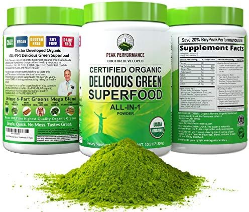Our Promise: With a trusted, Doctor recommended brand like Peak Performance, deliciously tasting Green Superfood using quality ingredients like organic barley grass, organic spirulina, organic spinach, organic chlorella, organic wheat grass, organic kale, organic broccoli, organic parsley, organic turmeric, organic artichoke and more.