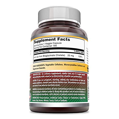 OPTIMUM DOSAGE Every Veggie Capsule of Superb Formulation Iron (as Iron Bisglycinate) dietary complement supplies an optimum dosage of 25 milligrams of Iron.