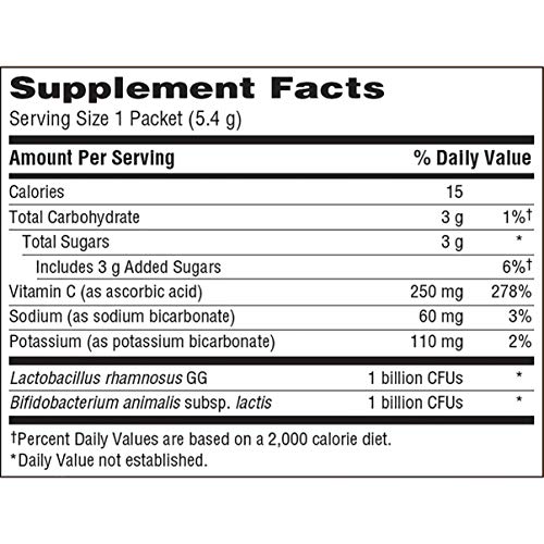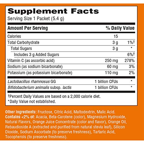 Contains 30 single-serving packets (0.19 oz. every) of Emergen-C Probiotics+ in Orange taste