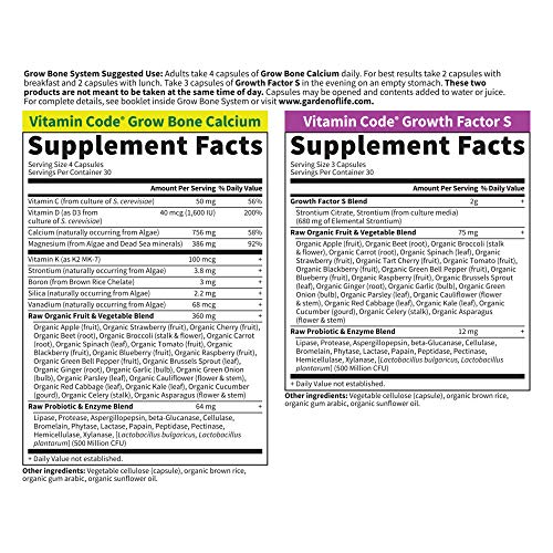 Calcium is crucial for bone power and joint well being. Develop Bone is a clinically studied bone and joint complement system with two complete, bone-building formulation which can be primarily based upon the system utilized in research: Vitamin Code Develop Bone Calcium and Development Issue S. Develop Bone has been clinically studied and proven to stimulate bone progress with 756mg Develop Bone Calcium—uncooked, vegetarian, entire meals plant calcium from AlgaeCal Uncooked powdered Marine Algae—386mg Magnesium—an important mineral that helps preserve regular muscle and nerve perform, supplies immune help, and retains bones sturdy—plus 1,600 IU vitamin D3 to assist the physique soak up these minerals.† The system collectively delivers AlgaeCal Uncooked, an alternate supply of calcium magnesium which seeks to help human bone well being, Development Issue S with 680mg Elemental Strontium (a essential bone-building hint mineral) plus dwell probiotics and enzymes—all delivered via vegetarian capsules for speedy absorption and higher bioavailability. Vitamin Code dietary supplements are RAW and produced beneath 115 Fahrenheit, with vitamins’ pure cofactors delivered intact with dwell probiotics and enzymes, identical to uncooked meals. †These statements haven’t been evaluated by the Meals and Drug Administration. This product isn’t meant to diagnose, deal with, remedy or stop any illness. ††Common train and a nutritious diet with sufficient Calcium and Vitamin D helps you preserve good bone well being.
