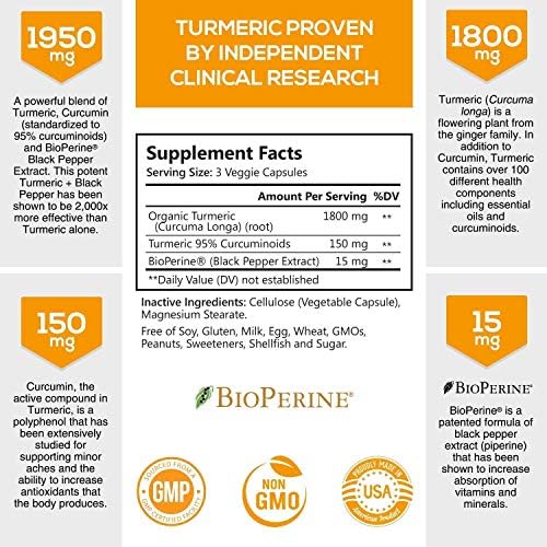 Trusted Formula: Our Turmeric is formulated and manufactured in the Usa following strict cGmp guidelines; Our Turmeric with BioPerine is third party tested to assure the quality and purity of each batch